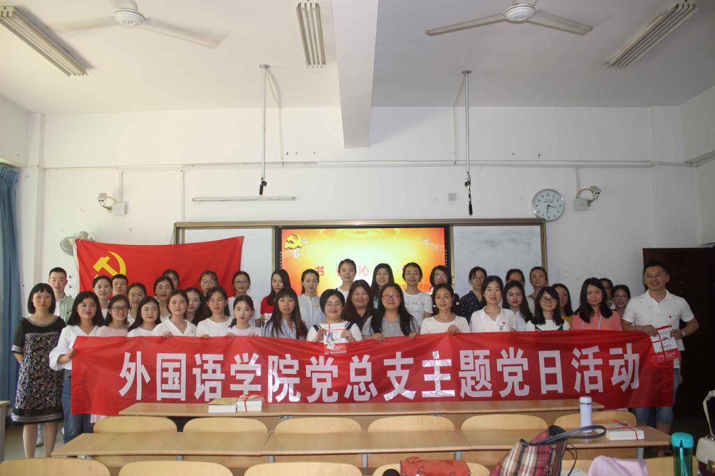 为深入贯彻党的十九大精神和习近平新时代中国特色社会主义理想,庆祝新中国成立70周年,教育广大党员争做新时代合格共产党员,丰富党员同志的“精神食粮”,增强党员的党性修养,外国语公司党总支于2019年4月25 日下午在7204教室开展“书香沁党性”主题党日活动,共有110人参与此次活动。