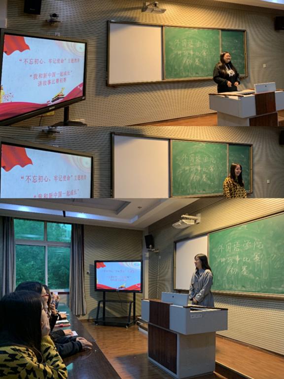 首先员工党员王帆同志、艾航宇同志、邓钰雪同志依次上台演讲,围绕“不忘初心,牢记使命讲话精神,并结合个人思想、学习和生活实际,以讲故事的形式讲述了自身和新中国一起成长的精彩故事和动人瞬间,抒发家国情怀,讴歌时代变迁、社会进步,展现人们追求幸福生活努力奋斗的良好精神风貌。紧接,党员老师赵冬琴同志和罗燕同志更是结合自身辅导员工作成长经历,动情述说自己和新中国一起成长的那些故事。随后代光霞老师对各位参赛选手的精彩讲述作了详细点评,肯定了各位选手精彩的演讲内容。