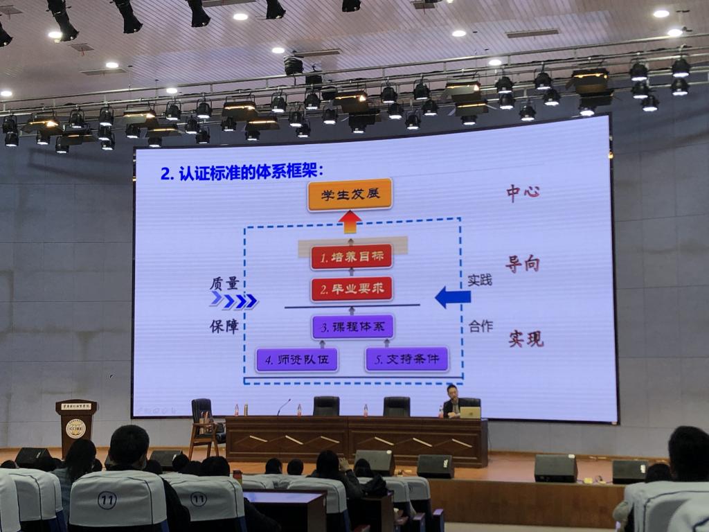 吴经理针对师范专业认证工作的重要性和几点体会、认证理念与体系简介、学院目前开展的工作、阶段性任务部署、重点任务的分工落实和其他工作要点进行了布置。