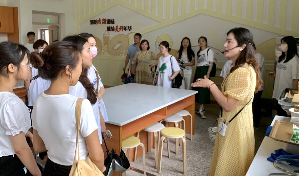 (图为讲解老师为师范生代表介绍烘焙室)