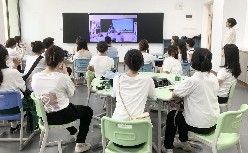 (图为观看小学员工制作重庆小面的实践课视频)