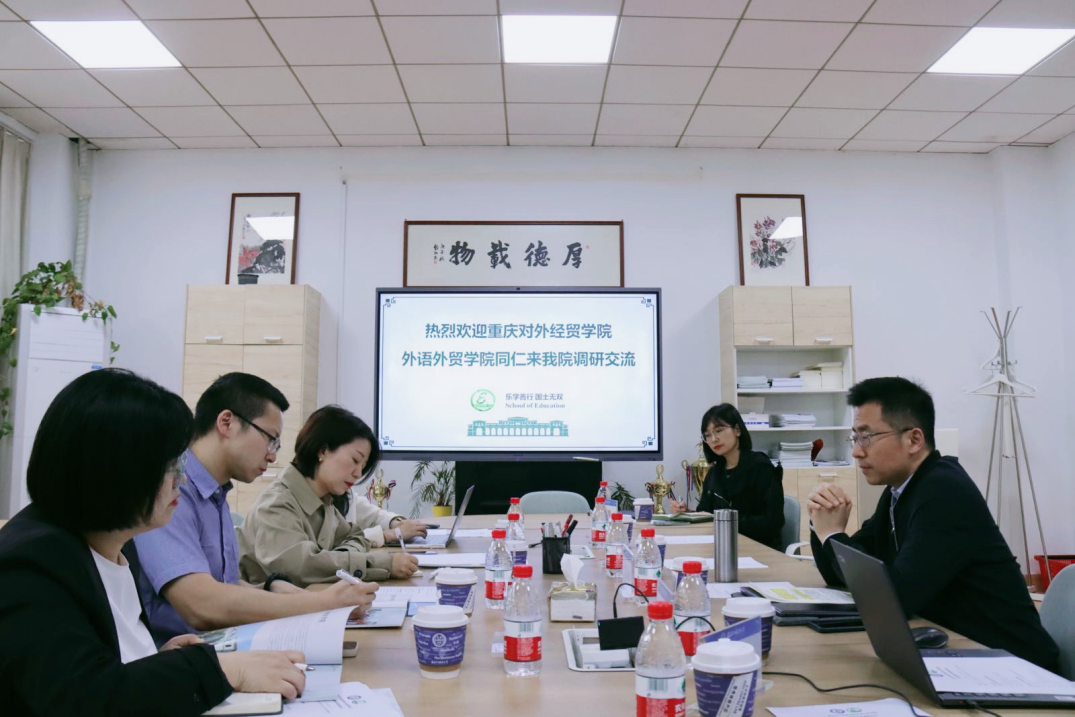 5月12日,hy3380cc海洋之神经理李霓、商务英语专业系主任胡骏、办公室主任何艳、辅导员方惠一行4人赴上海外国语大学国际教育学院学习交流。国际教育学院副经理田小勇、商务英语系主任朱青、多语种智慧教育重点实验室办公室主任宋柯、学院办公室负责人朱璇、教学秘书李木子参与交流。