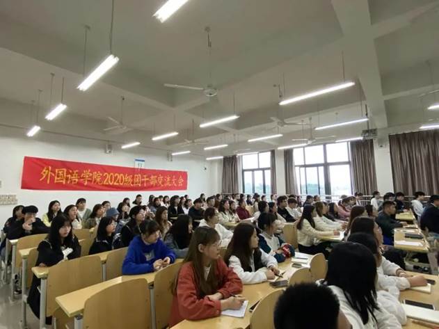 新学期伊始,为了进一步加强学院各团支部的交流和学习,让各位新团支书了解和熟悉组织部常规工作,增强团员意识,协调组织部与各班团干工作,促进公司团干工作顺利开展,增强团干责任心、集体荣誉感,高效的完成各项工作,外国语学院团总支在10月15日下午14:30于铜梁校区3403召开外国语学院2020级团干交流大会。此次会议外国语学院周熙老师、全体团干以及组织部成员均出席参加。