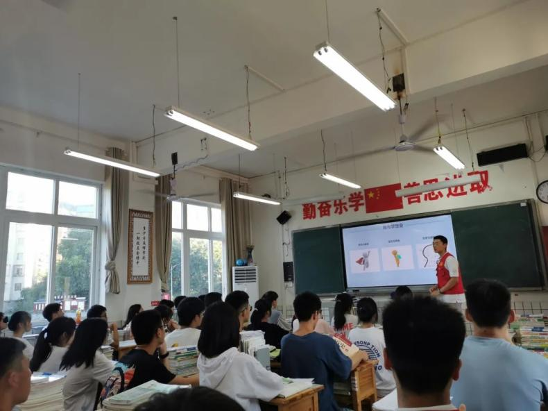 活动中,由党员先锋实践队队员组成的理论宣讲组针对“高三应该如何学习”、“如何有效学习“、”大学的生活怎么样“等方面展开分享,根据理论宣讲组成员自身不同实际情况给同学们分享真实有用的经验建议。
