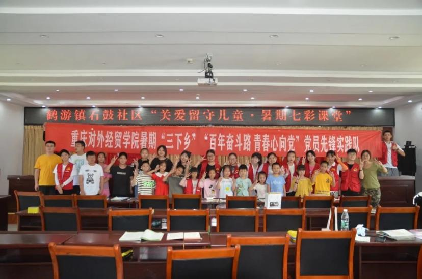 教育是乡村的支柱,中国乡村的振兴、农村的现代化,离不开乡村教育的发展。只有办好乡村教育,才能更好助力乡村振兴。对此,hy3380cc海洋之神“百年奋斗路•青春心向党”党员先锋实践队本着“内涵发展,产教融合,服务地方,形成特色”的理念于2021年7月13日在重庆市垫江县鹤游镇石鼓社区开展了“关爱留守儿童,暑期七彩课堂”活动。