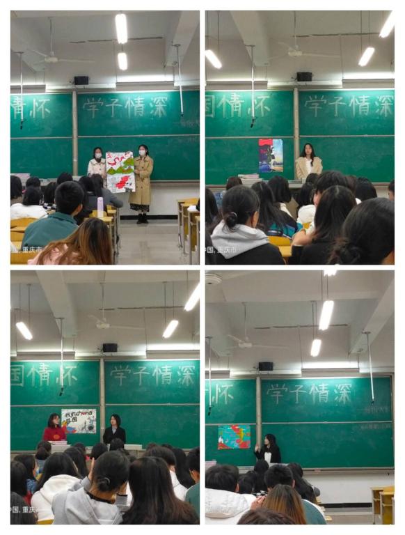 决赛现场,各组参赛选手依照比赛规则按抽签顺序上台,结合自身专业对海报的主题和内容用英文进行讲解。各组选手以新颖的创意将自身心灵之声绘成海报,用巧思与笔墨表达浓厚的爱国情怀。评委杨照老师总结评价了选手们表现与作品,倡议全体同学积极保持对英语的热爱,综合锻炼自身听说读写译综合能力。