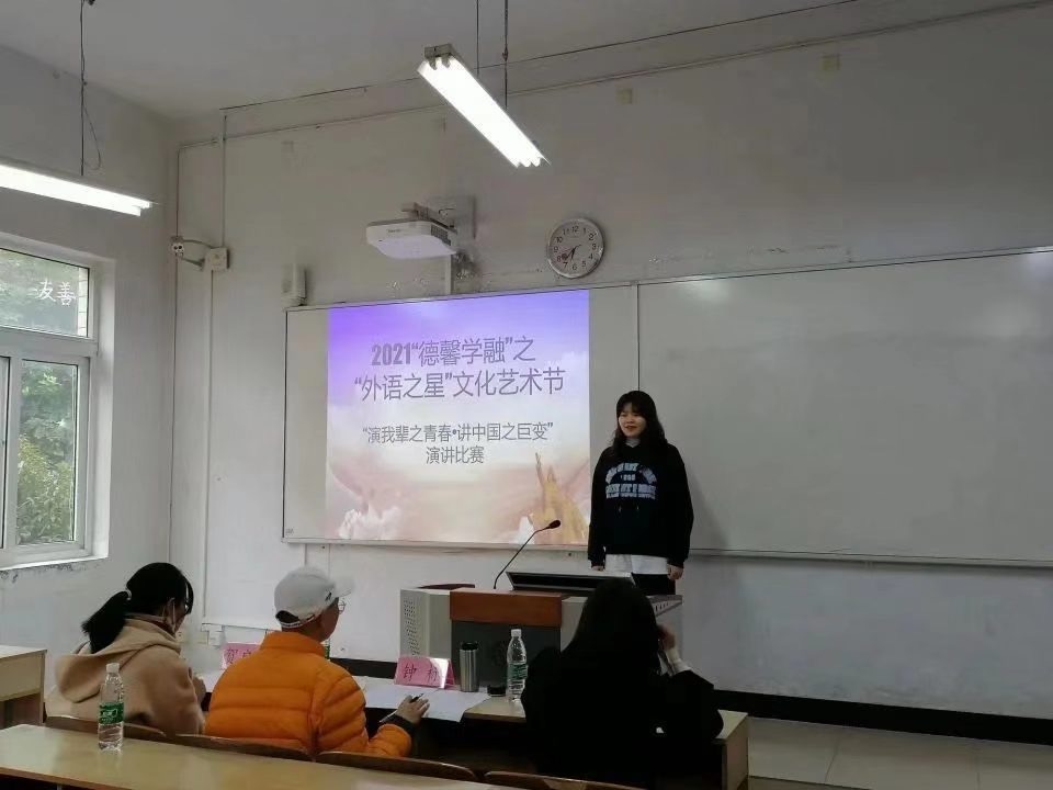 2021“德馨学融”之“外语之星”文化艺术节“展我辈之青春 话中国之巨变”演讲比赛初赛和决赛先后于11月4日和11月11日在铜梁校区和合川校区进行,铜梁校区担任决赛的评委老师有吴倩、袁夕茗、杨艳,合川校区担任决赛的评委老师有薛青妍、钟标、贺启静。