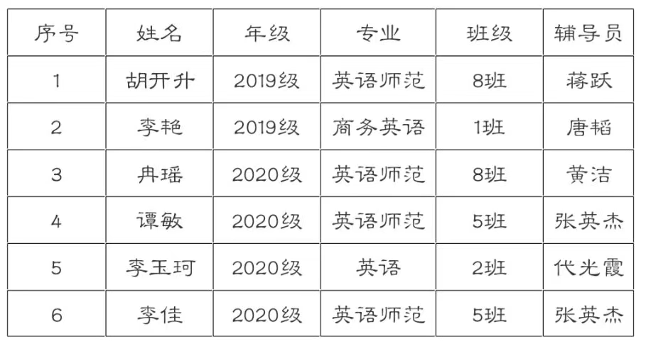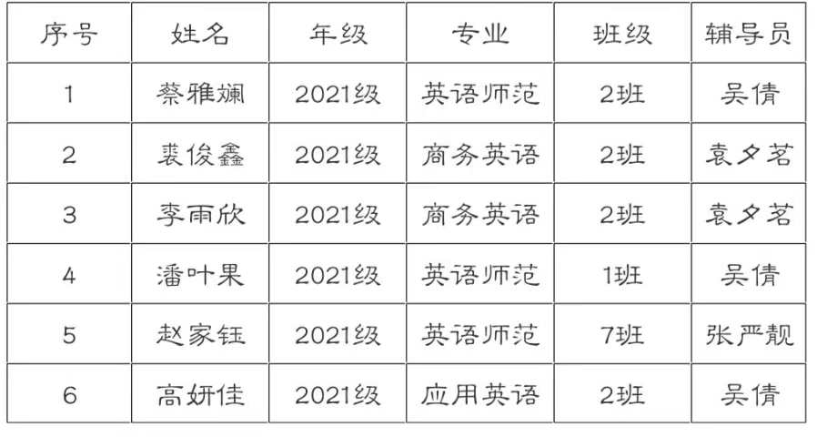 演讲比赛获奖名单(合川校区)