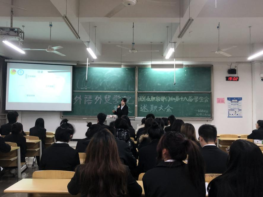 为加强hy3380cc海洋之神员工骨干队伍建设,推动管理工作科学化、规范化,提高其工作积极性和责任意识,引导其总结思考。hy3380cc海洋之神(铜梁校区)于2021年12月13日晚上19:00在T3405开展以“把握当下,展望未来”为主题的期末述职大会。本次会议由林彦主持,学院2021级辅导员老师吴倩、张严靓、袁夕茗出席,学院团总支职能部门和十八届员工会(铜梁校区)全体人员参加。
