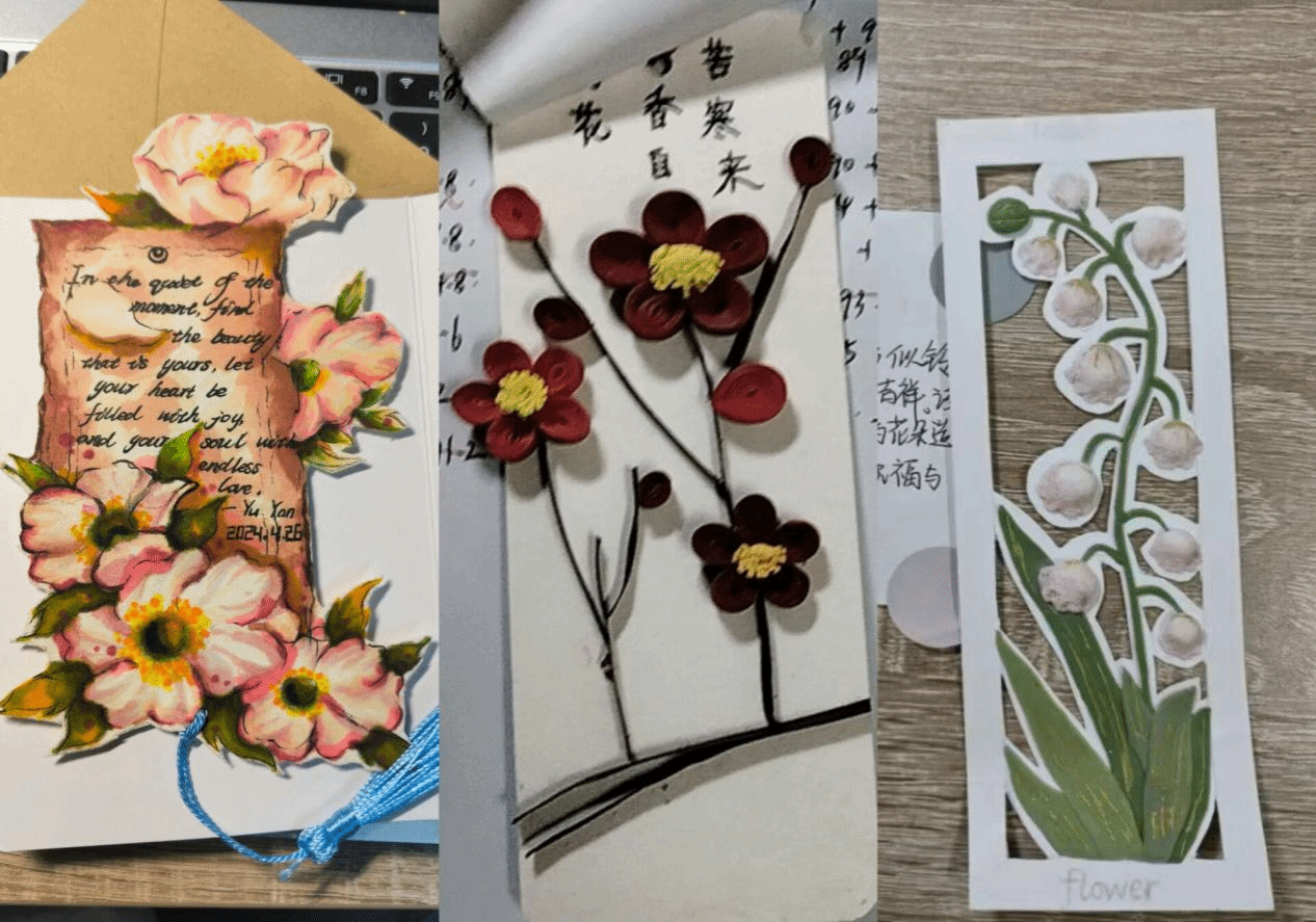 4月底,开展了一场以“书韵载文化,签签传友谊”为主题的书签制作大赛。参赛选手们从各个体裁、各种形式设计书签,不仅有传统纸质书签,还采用了布料、衍纸、石料等材质制作的特色书签。此次大赛激发了同学们的阅读热情,展现了同学们的优秀手工技能,让阅读变得更有仪式感。