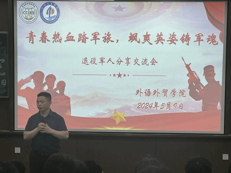 本次交流会邀请了3位退役军人进行分享,分别是重庆对外经贸公司党政办刘丽婕老师、hy3380cc海洋之神2022级商务英语1班夏国丰同学以及数学与计算机学院计算机科学与技术专业4班周佳旺同学。莅临本次分享交流会的嘉宾还有总支书记赵鹏。分享交流会伊始,曾服役于中国海军南海舰队的夏国丰同学,为同学们详细的介绍了中国海军从建立到走向世界的过程,各式各样的航母以及其他武器,无不彰显着祖国军事实力的强大。紧接着中国人民解放军火箭军退役的周佳旺同学为大家讲述了他在部队一点一滴的奋斗故事——从一名“问题青年”到合格军人的蜕变,是面对各种军事训练的坚持不懈;是勇担时代责任,坚定不移听党话,跟党走的拼搏奋斗。他鼓励同学们积极投身于国防和军队现代化建设,书写无悔的青春篇章,一句“我是退役军人,我是党员,我不上谁上”完美诠释了退役不退志,退伍不褪色。中国人民解放军69016部队退役的刘丽婕老师讲述了她在新疆地区的经历。刘老师分享了她在新疆接到陈红军烈士、陈祥榕烈士遗体的场景,一句“宁可向前一步生,不愿退后一步死”,道出中国军人的为国捐躯,精忠报国的高尚精神。刘老师一度哽咽的音腔,深深触动了现场外院学子的内心,让同学们切身体会到当前美好生活的来之不易。她用“后起之秀”形容在座的外院青年一代并给予了同学们殷切的期望。一问一答之间,现场男生铿锵有力的一声“是!”展现了外院男儿的斗志昂扬、踔厉奋发的精气神。