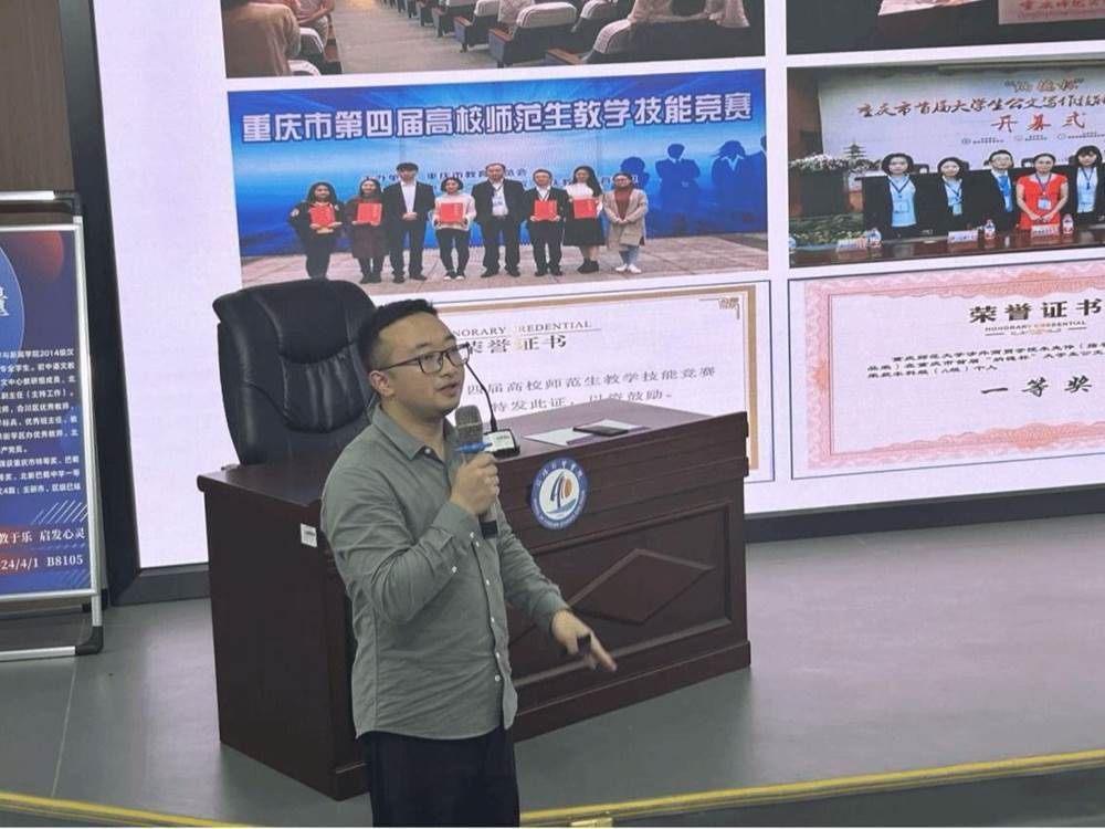 由主持人宣布分享交流会开始后,朱先伟老师以“师范生的自我修炼”为主题,分别从“我与涉外,我与北巴”、师范生的成长现实、师范生的两大阵地以及师范生的专业追求四个部分与到场同学进行分享交流。分享交流活动过程中,朱先伟老师风趣幽默,交流形式独特新颖,通过老师提问员工答、员工提问老师解答等环节吸引同学们注意力,让更多的同学参与其中。其中,最让同学们感受颇深的是朱先伟老师提到的“跨出第一步,就已经成功了百分之九十。”活动最后,由工作人员为朱先伟老师献上鲜花以表敬意与感激并邀请朱先伟老师与党总支书记赵鹏以及各位参会同学合影留念。