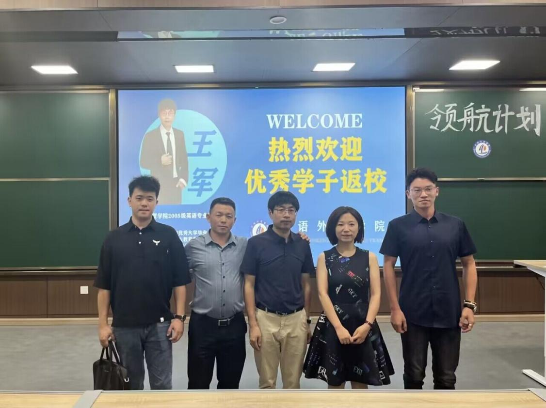 王軍先輩は卒業後上海に就職し、前後して上海新華研修学院副院長兼人事部主任、上海応用技術大学国際教育センター员工募集部主任、上海応用技術大学継続教育学院言語訓練部主任、上海工芸美術職業学院生涯教育学院芸術文化訓練部主任といった職務を務めた。2015年に上海宙垚教育集団を設立し、理事長を務めた。